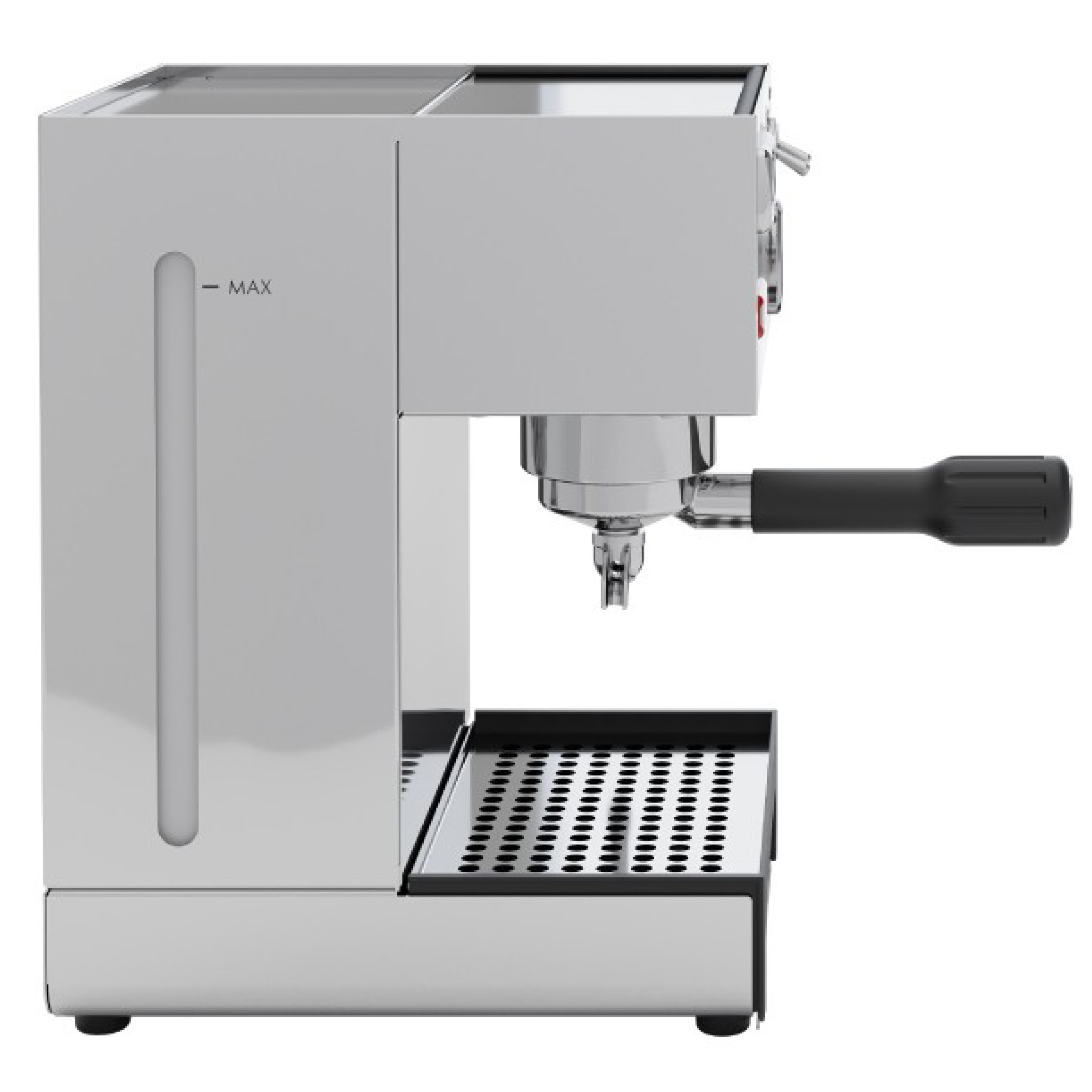 Eine eher kleine und kompakte Espressomaschine, welche auch für kleinere Küchen sehr gut geeignet ist. Da der Wassertank von oben zu Befüllen ist, sollten sie dennoch etwas Platz über der Espressomaschine einplanen. Im Lieferumfang ist ein Siebträger mit 2er Auslauf, 1x Eintassensieb (7-9g), 1x Zweitassensieb (14-18g), 1x Pod-Sieb, Tamper und ein Messlöffel enthalten.