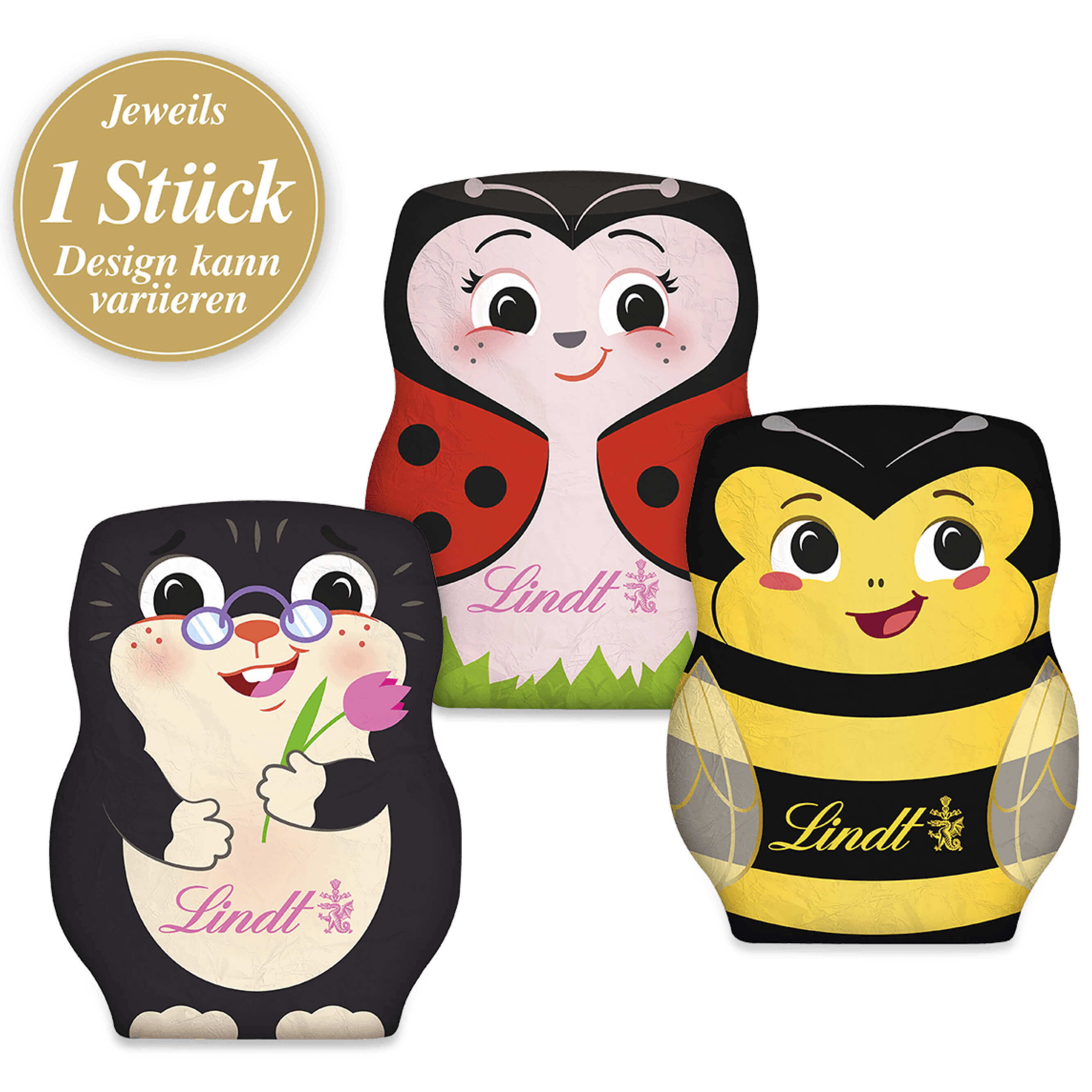 Stückzahl: 1 × Hohlfigur à 40 g (Design zufällig: Biene, Marienkäfer oder Maulwurf)