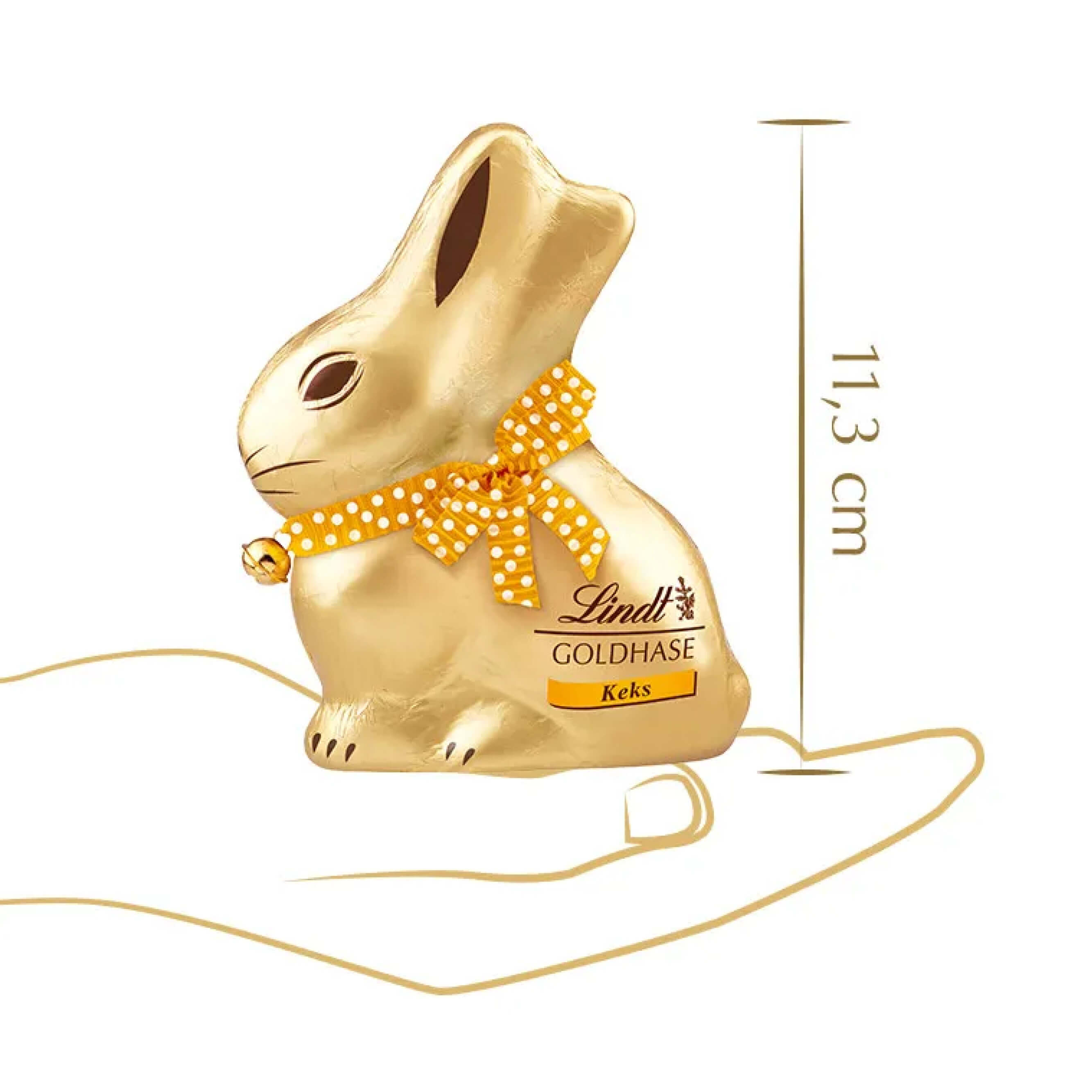 Geschmückt mit einer fröhlich gestalteten Schleife samt Glöckchen, präsentiert sich diese Edition als moderne Variation eines liebgewonnenen Klassikers. Ob im Osternest, als kleine Aufmerksamkeit oder dekorativer Hingucker – der Goldhase Keks verbreitet frühlingshafte Freude und besonderen Genuss.