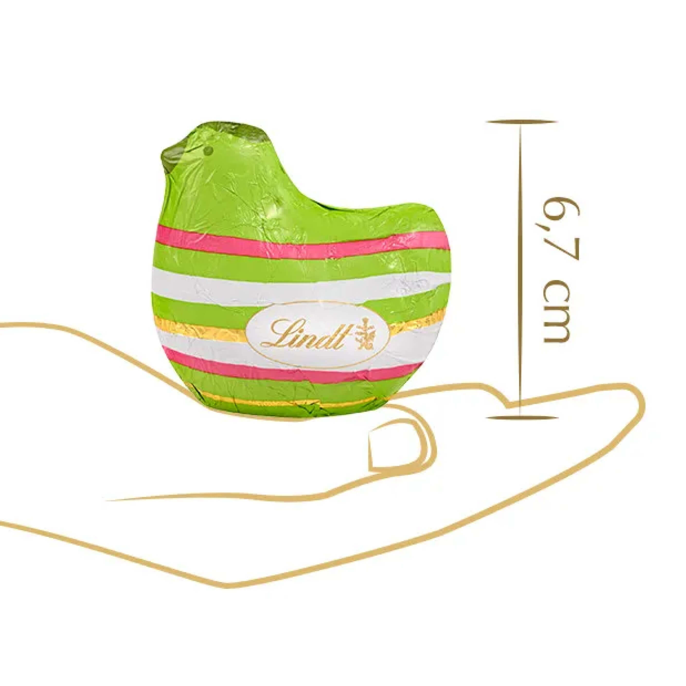 Unter der dekorativen Folie verbirgt sich zartschmelzende Lindt Alpenvollmilch‑Schokolade, die für ihren vollmundigen Geschmack und cremigen Schmelz geschätzt wird. Die kleine Schokoladen‑Henne eignet sich ideal als süße Überraschung, Tischdekoration oder kleines Geschenk für Familie, Freunde und Kolleg:innen.