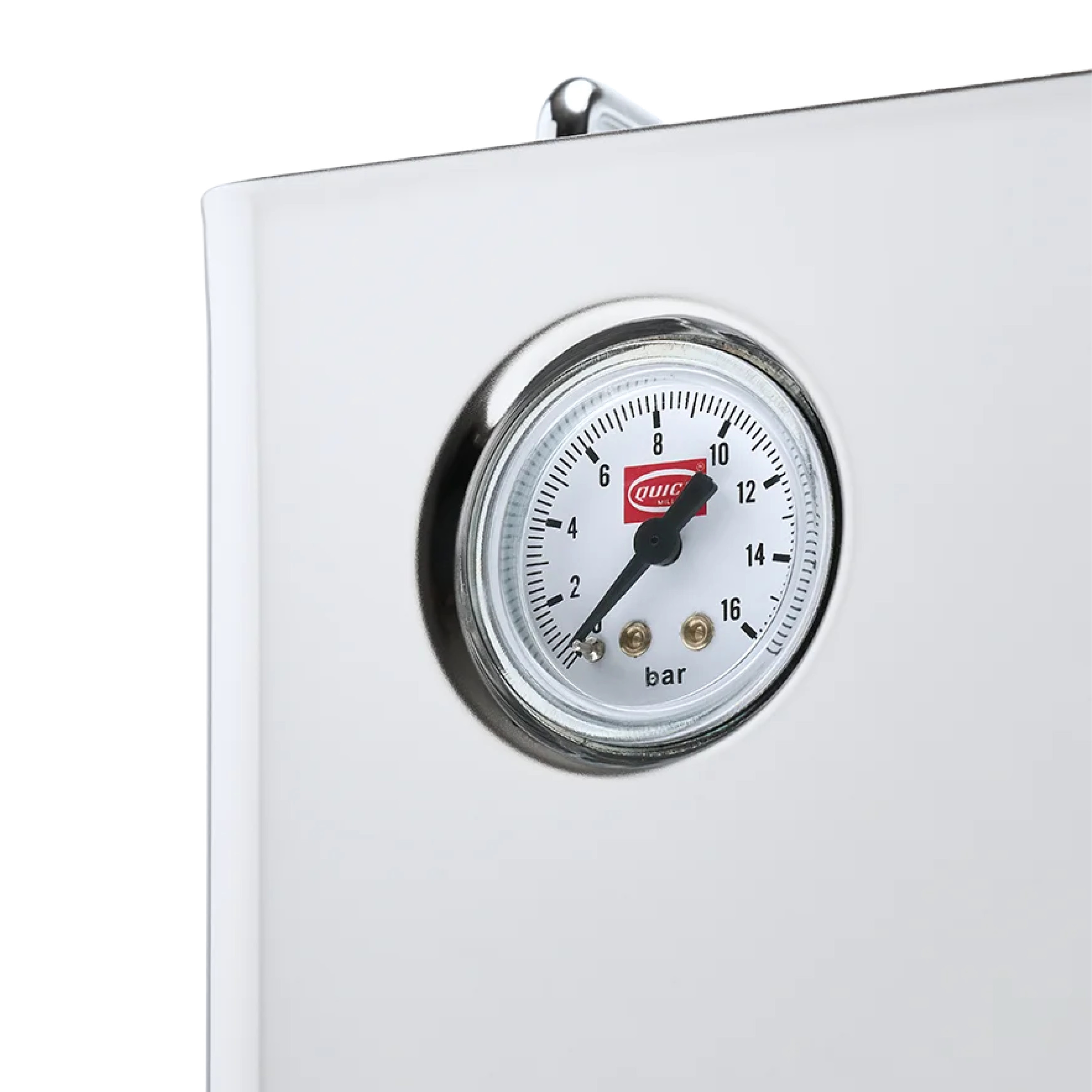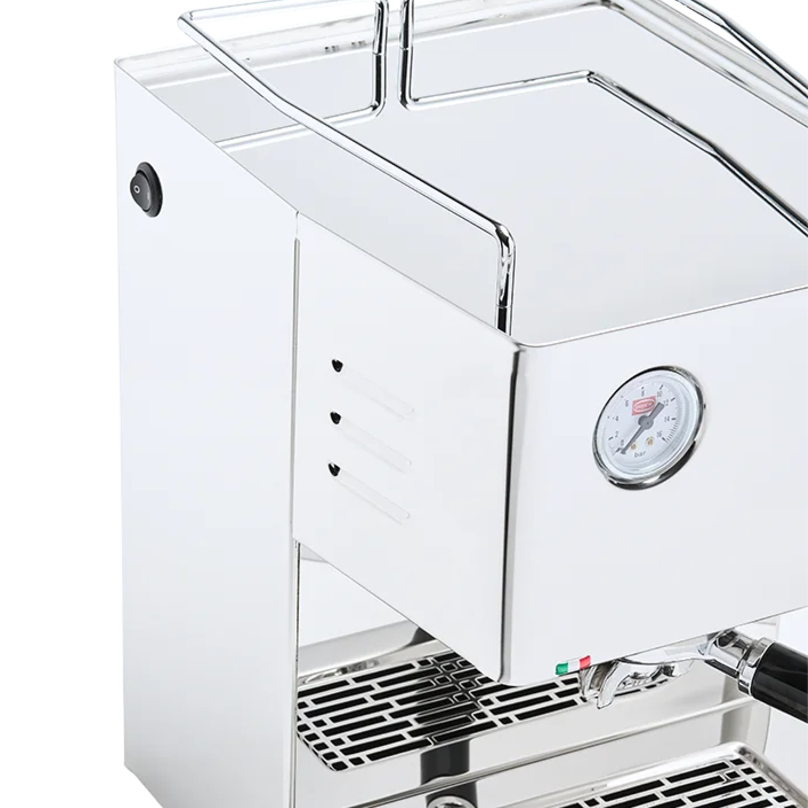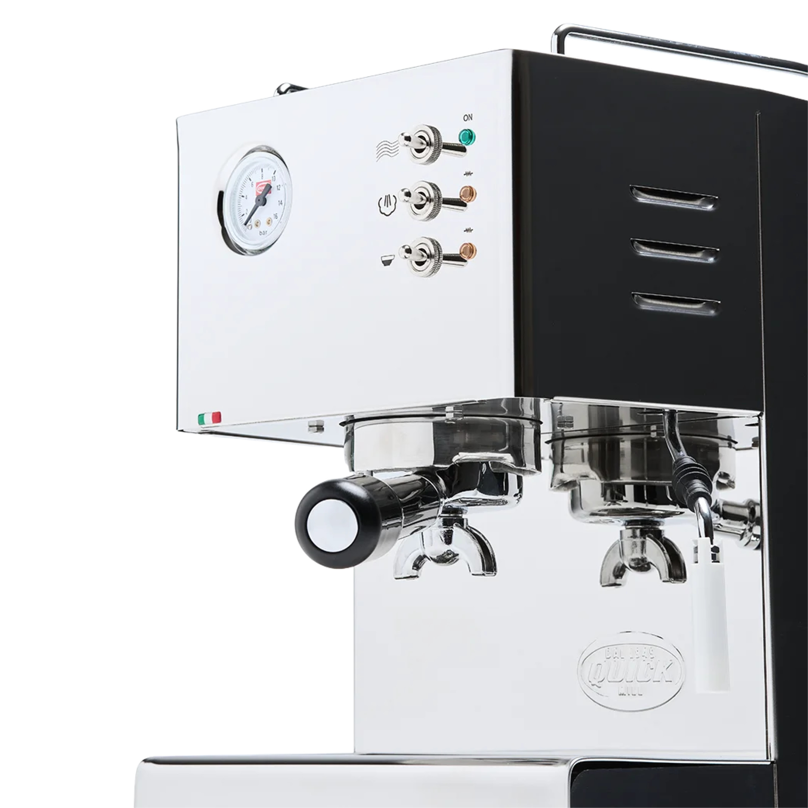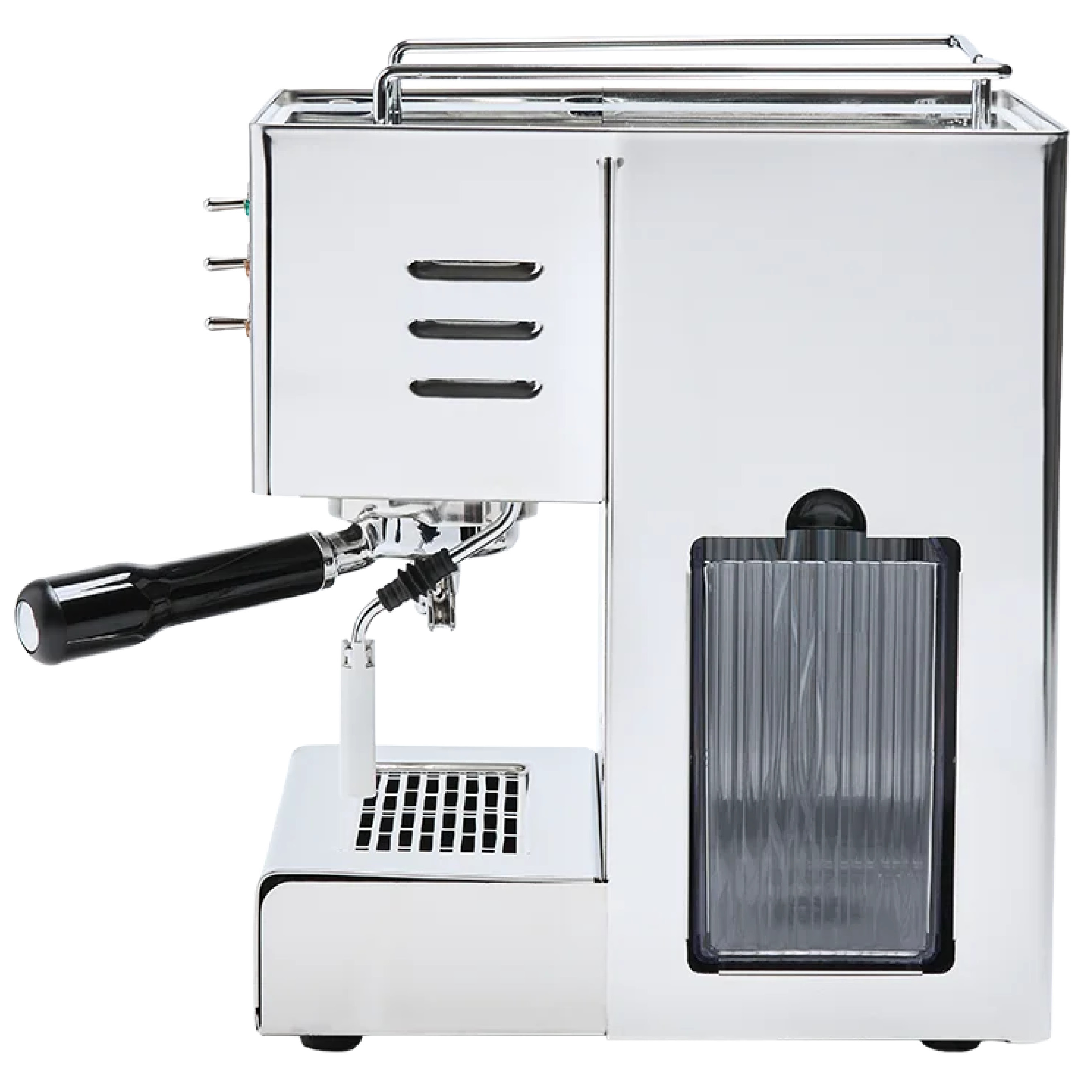 Quick Mill testet jede Maschine einzeln vor dem Versand. Daher können minimale Wasserreste vom Funktionstest im Tank sichtbar sein – ein Zeichen echter Qualitätskontrolle.