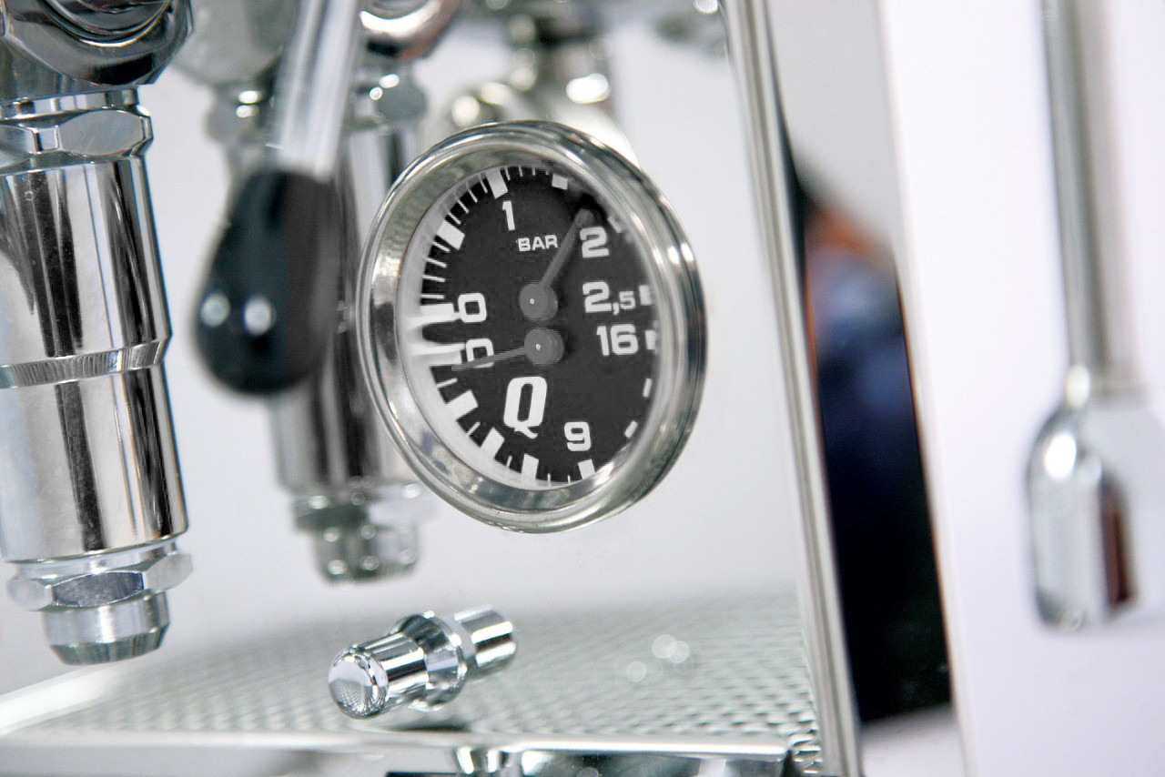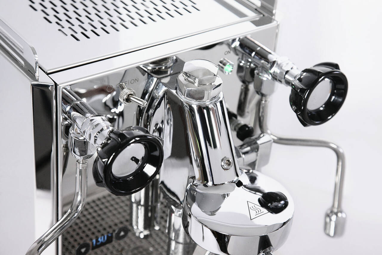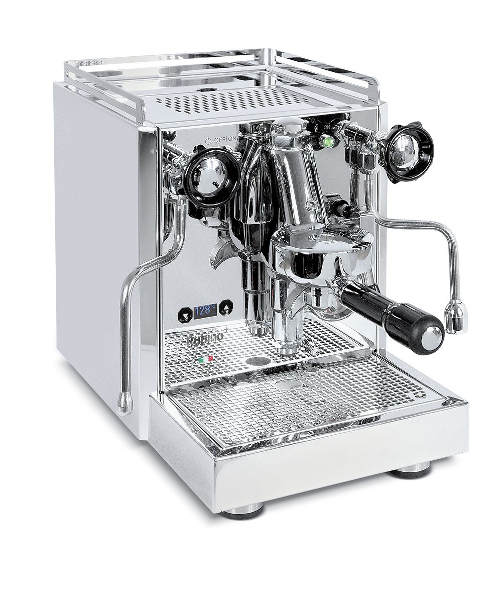 Die Espressomaschine hat alle Bauteile verbaut, welche für einen Espressobezug und einen ordentlichen Bezug notwendig sind. Mit der PID Steuerung lassen sich alle Temperaturen einstellen und das Display dient als Sekundenzähler. Mit dem Doppelmanometer haben sie die beiden Druckanzeigen, Vibrationspumpe und den Kesseldruck im Überblick. Gegenüber der normalen Rubino Ausführung hat das Siebträgermodell neue Drehgriffe für die Ventile und ein neues Abtropfgitter aus Edelstahl.