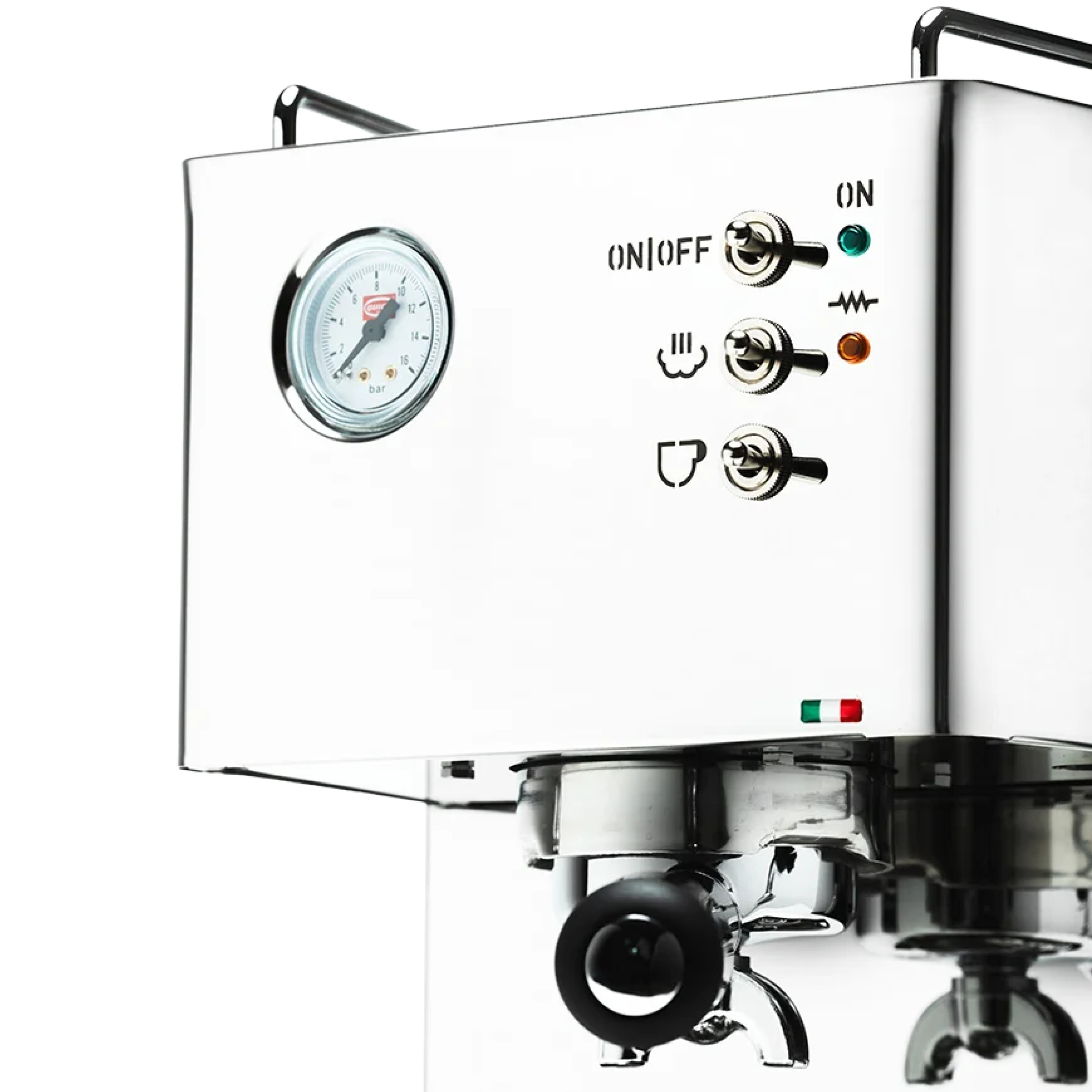 Quick Mill testet jede Maschine vor Auslieferung unter realen Bedingungen. Daher können minimale Wasserreste im Tank zurückbleiben – ein Zeichen für Qualitätskontrolle.