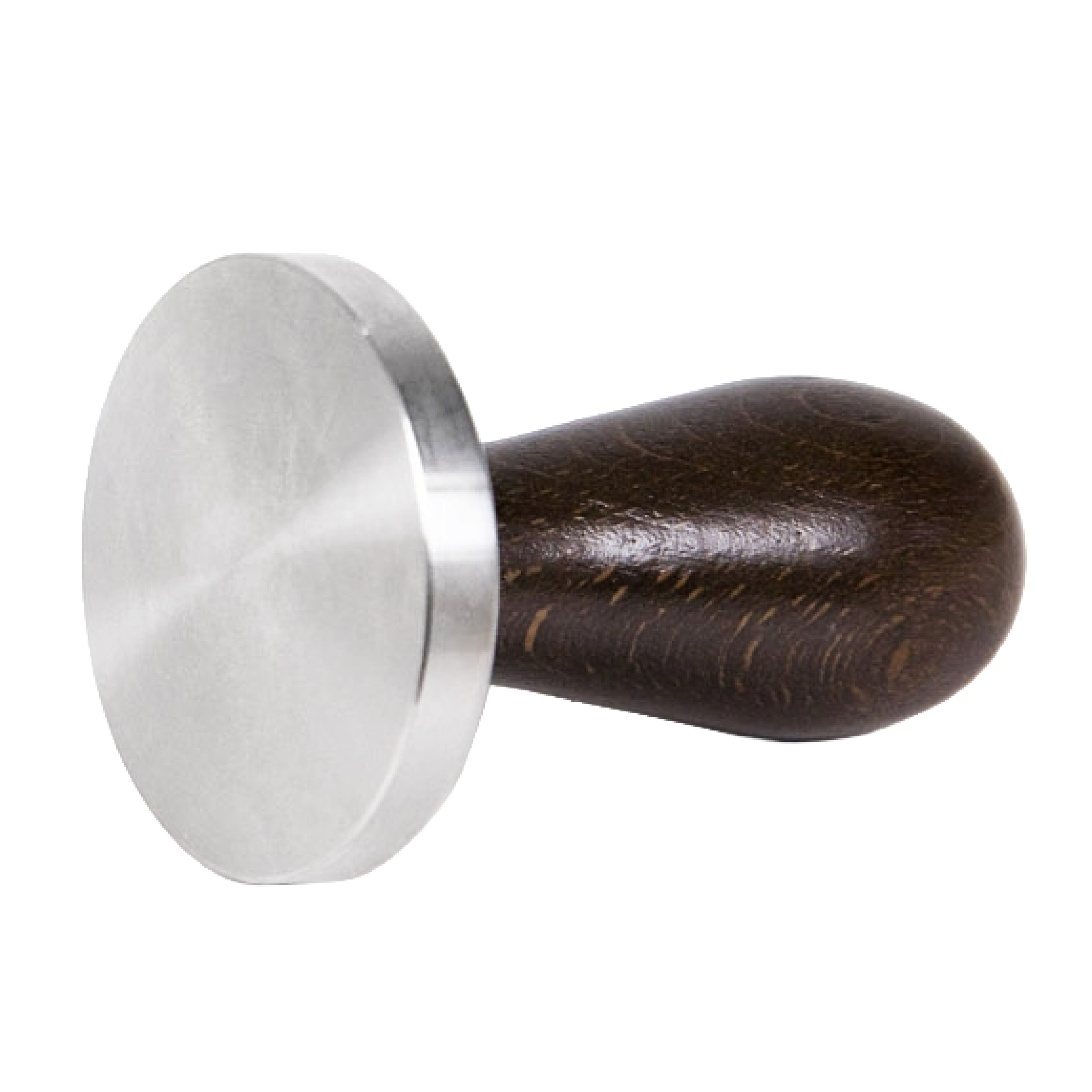 Die glatte Edelstahlbasis sorgt für ein gleichmäßiges Verdichten des Kaffeemehls, während der ergonomisch geformte Holzgriff bequem in der Hand liegt. Das gut verteilte Gewicht unterstützt ein kontrolliertes Tampen – ein entscheidender Faktor für eine balancierte Extraktion.