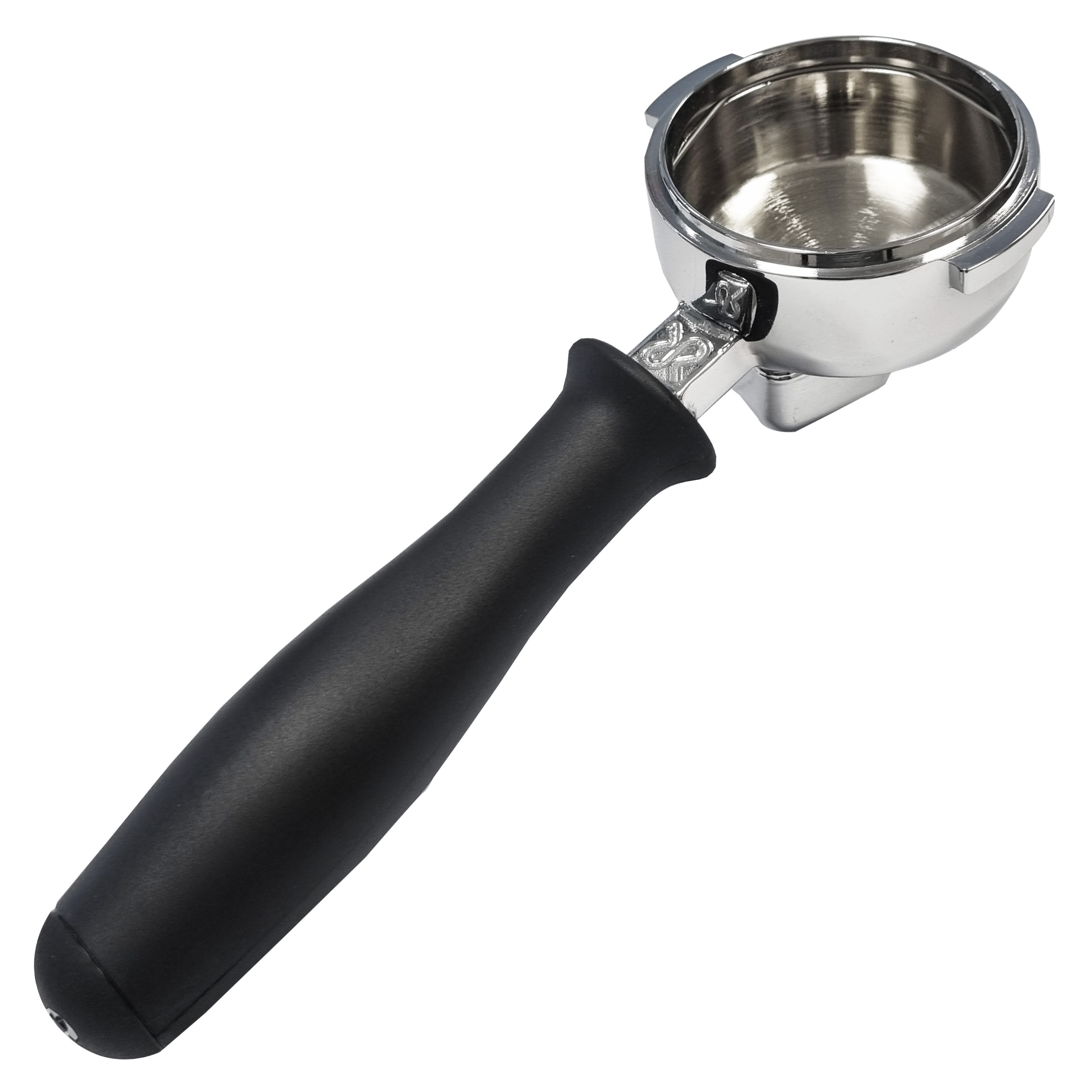 Klassischer Siebträger für die Siebträgermaschinen Silvia und das ältere Modell Lucy. Der Siebträger hat einen Auslauf für eine Tasse Espresso.