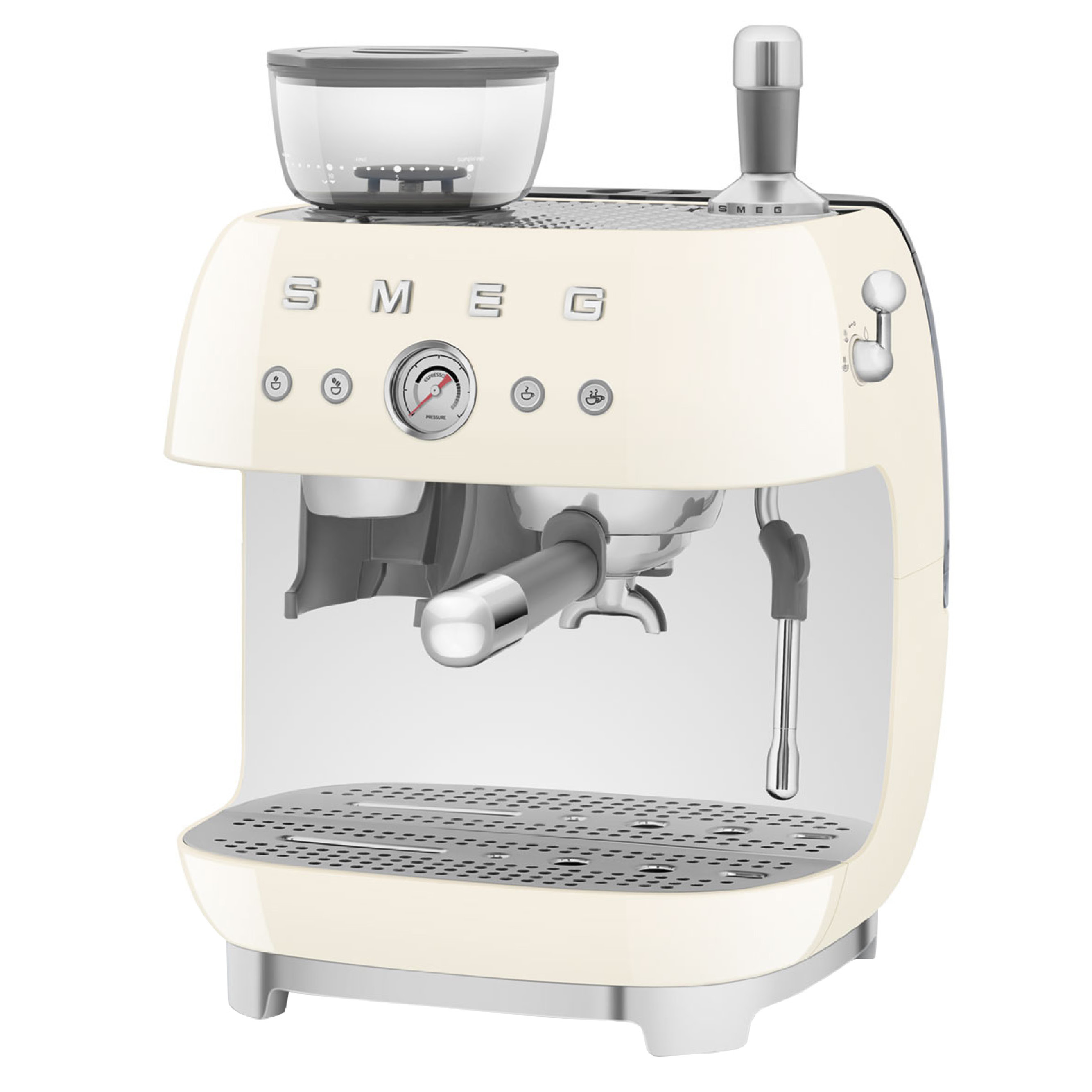 Nutzen Sie die Smeg Espressomaschine nicht nur für einen perfekten Espresso am Morgen, sondern auch für köstliche Cappuccinos oder Latte Macchiatos zu jeder Tageszeit. Überprüfen Sie mit dem Druckmanometer, ob Ihr Kaffee mit dem richtigen Druck extrahiert wird – so gelingt jede Zubereitung garantiert.