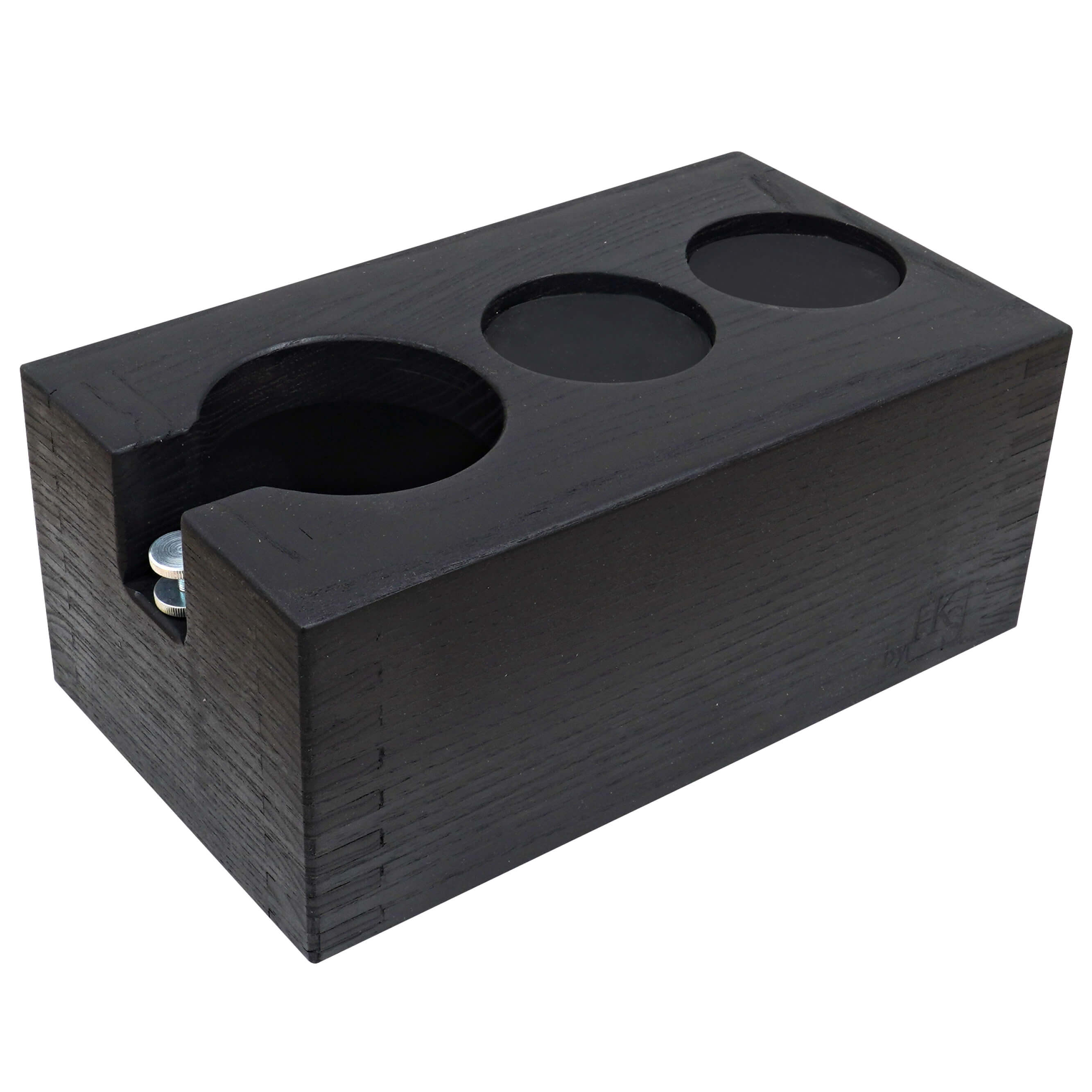 Erfreuen Sie sich an der Tamperstation Esche schwarz, einem einzigartigen Zubehör für wahren Kaffeegenuss. Dieses Unikat, in detailverliebter Handarbeit gefertigt, bringt Qualität und Stil in Ihre Kaffeezubereitung.